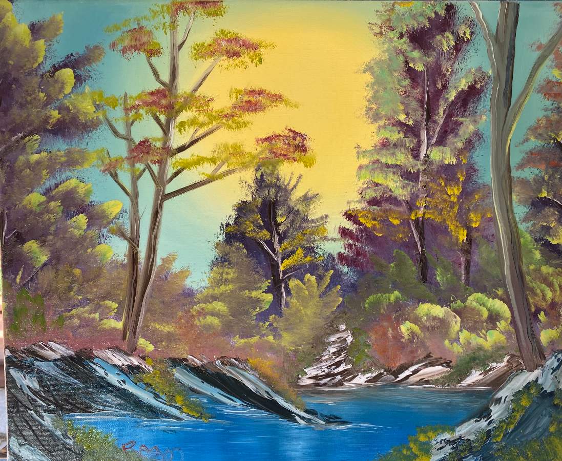 This was the weirdest color pallet and the worst production. It was kind of sweet how you could hear traffic and stuff banging around in the background and that Bob wasn’t used to keeping a show going. THe pthalo green totally threw me off and the sky was bizarre. In the future he avoids a green sky by using yellow ochre and alazryn crimson. This time? Full on green sky! So weird.