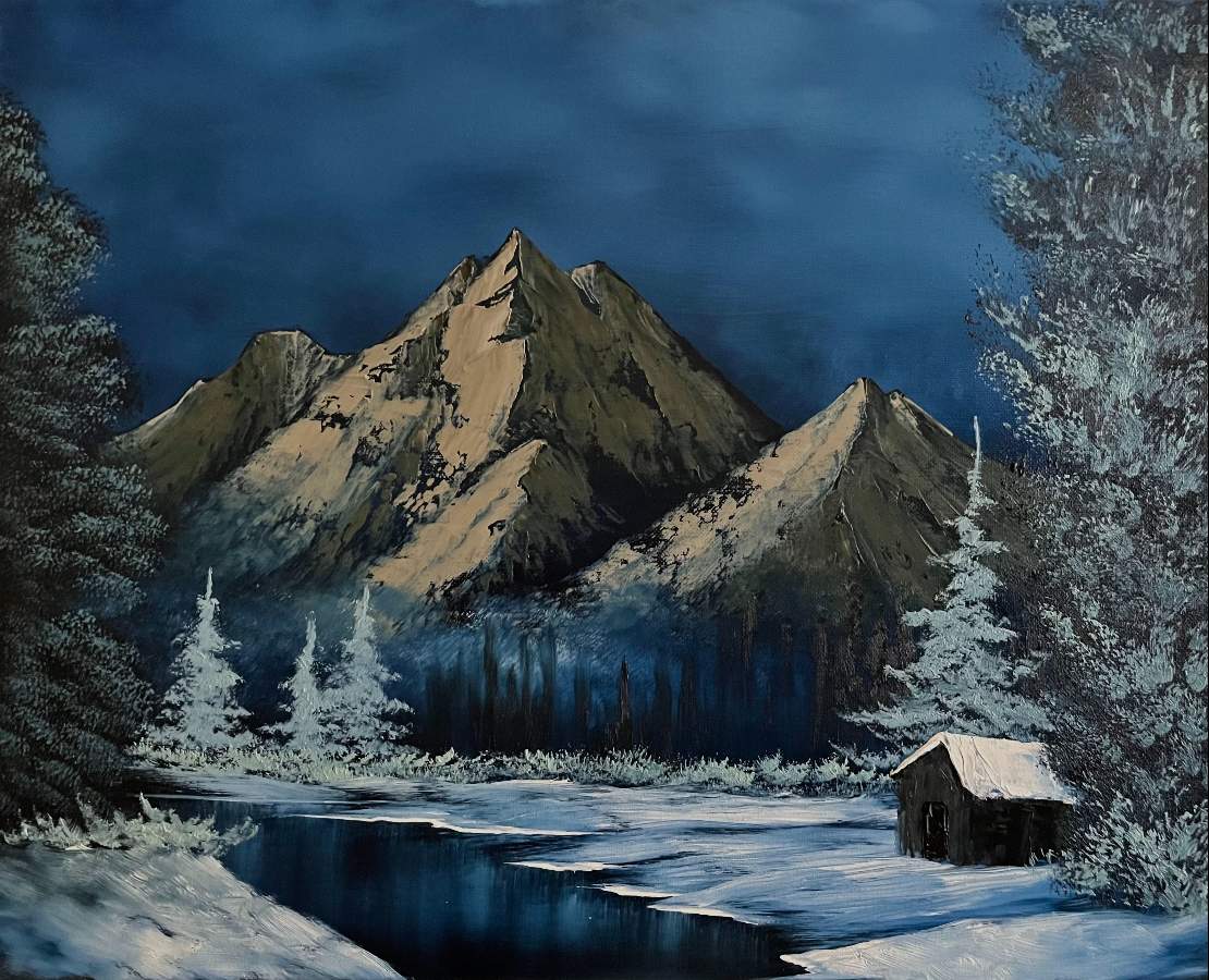 That mountain is beautiful! And you really nailed the snow on the ground by the water. Amazing work!