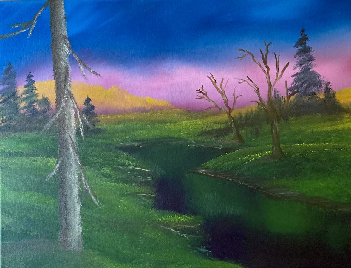 Have always loved this painting, and one of the first of Bobs episodes I saw. I decided to give it a try today, the tree in the front was fun to do. 🙂