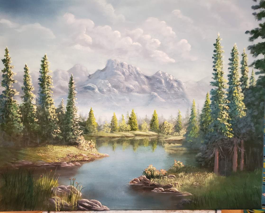Mountain reflections was the inspiration for this painting. I changed it and spent a lot of time on the details. I have been painting for 3 years now. When I look at my first paintings, I cant believe how far I've come.