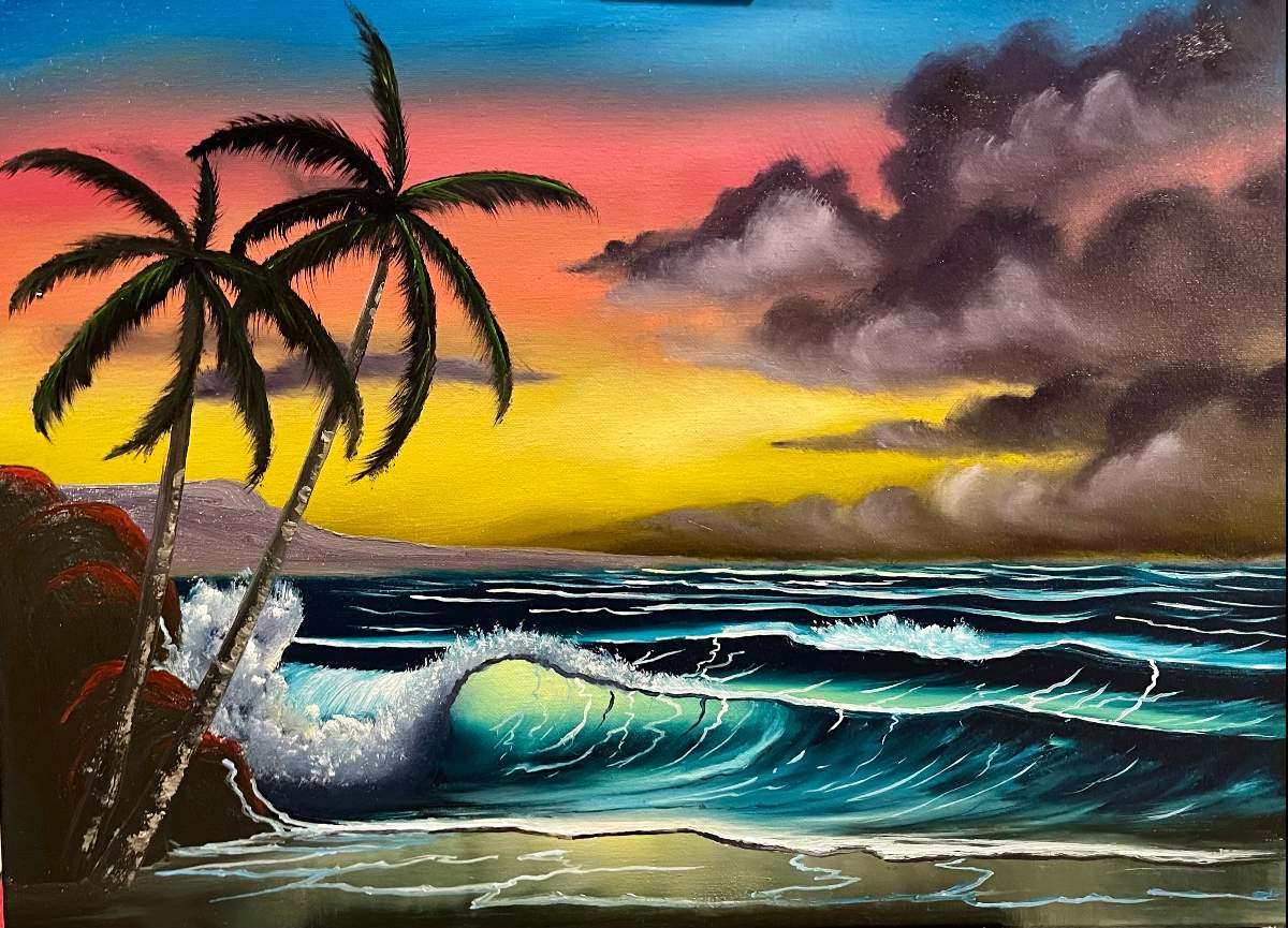 Love the colors and foam looks great. Palm trees are well defined. Nice job. In my opinion these types of color filled paintings could probably sell really well. They would brighten up a room as Bob says.