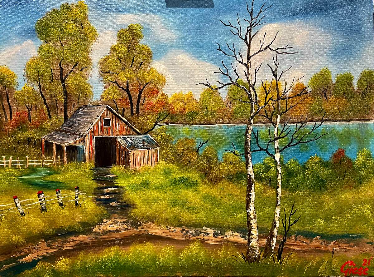 A really pretty one. I have wanted to do this one also since it looks like my neck of the woods as well, but never tried a building until yesterday's painting. I am afraid I will mess up a good painting with a weird barn LOL. Your barn is great!