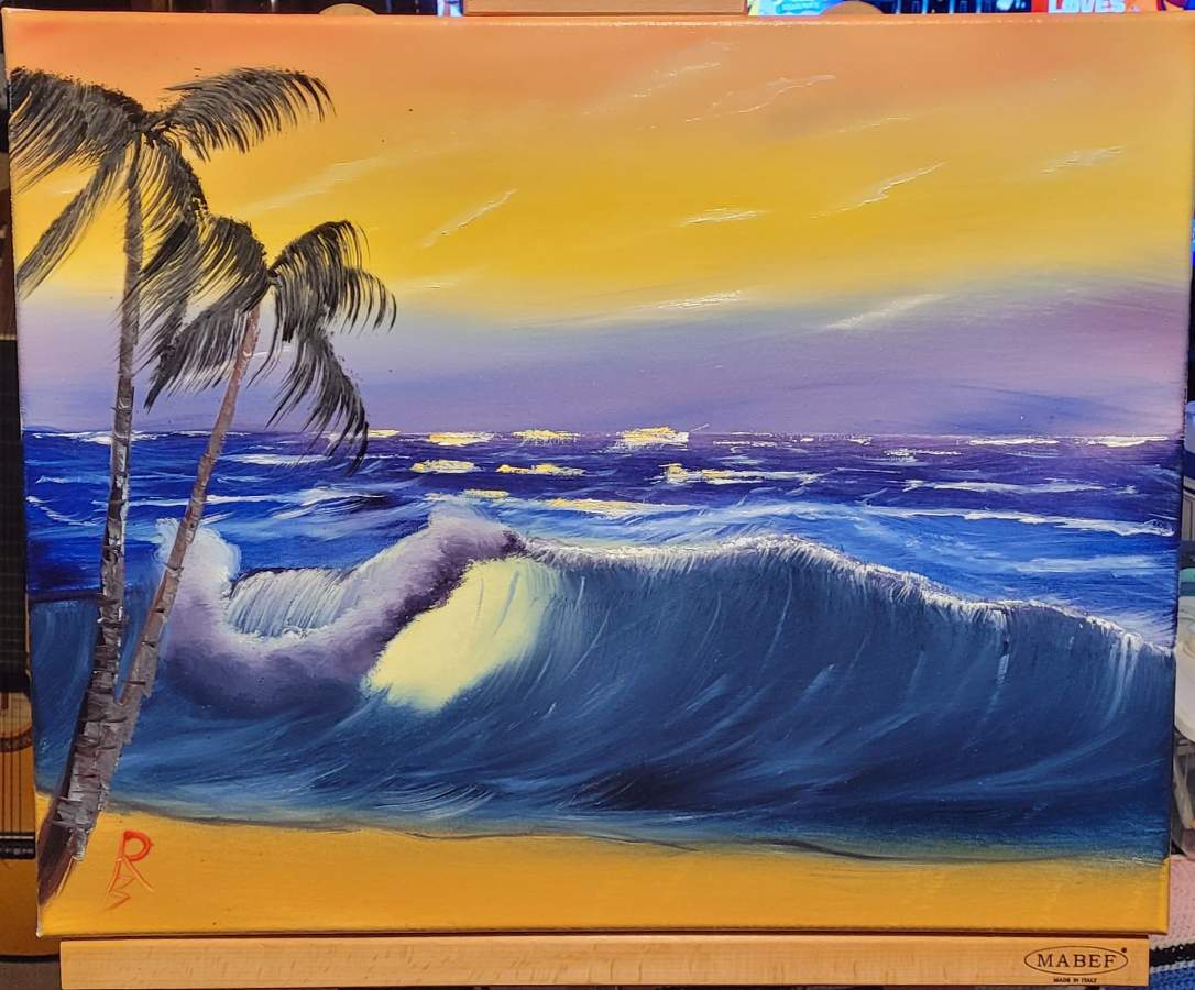 Love the waves and the colors in the sky.