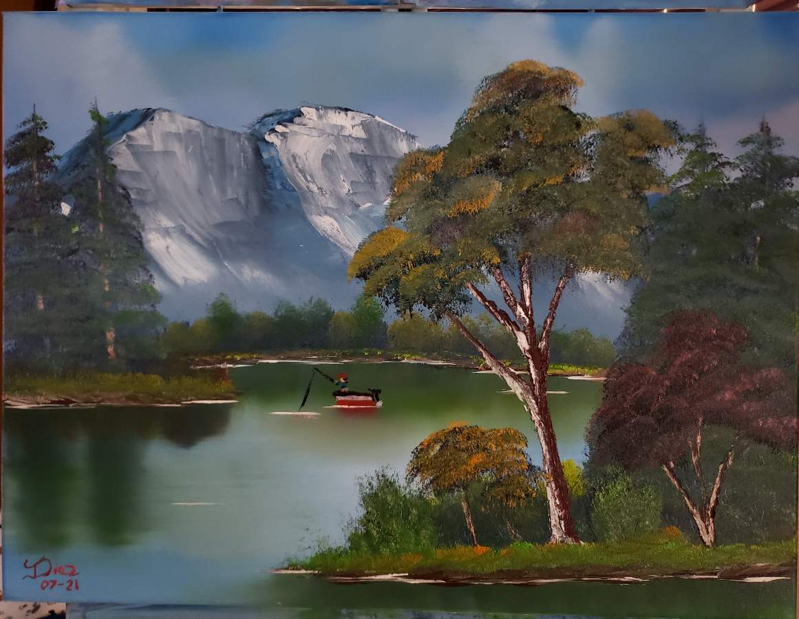 So I decided to watch the episode and then painted by memory. I finished then painting and went back to see his painting. It was then I realized how bad my memory really is since I have gotten older 😅