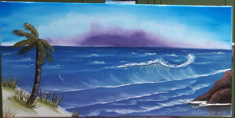 I think it turned out okay. I had trouble with the sea-foam and the grasses. I guess the fan-brush ist not my friend... ^_^;
