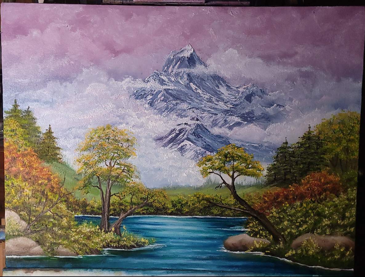 Wow you guys are to awesome!! I guess you can call it a bob ross on steroids!! Lol.. to tell you the truth I keep playing with it to see new results..... thank you for all the comments!!! I still have to get the water just right..... not there yet.... but that's ok!