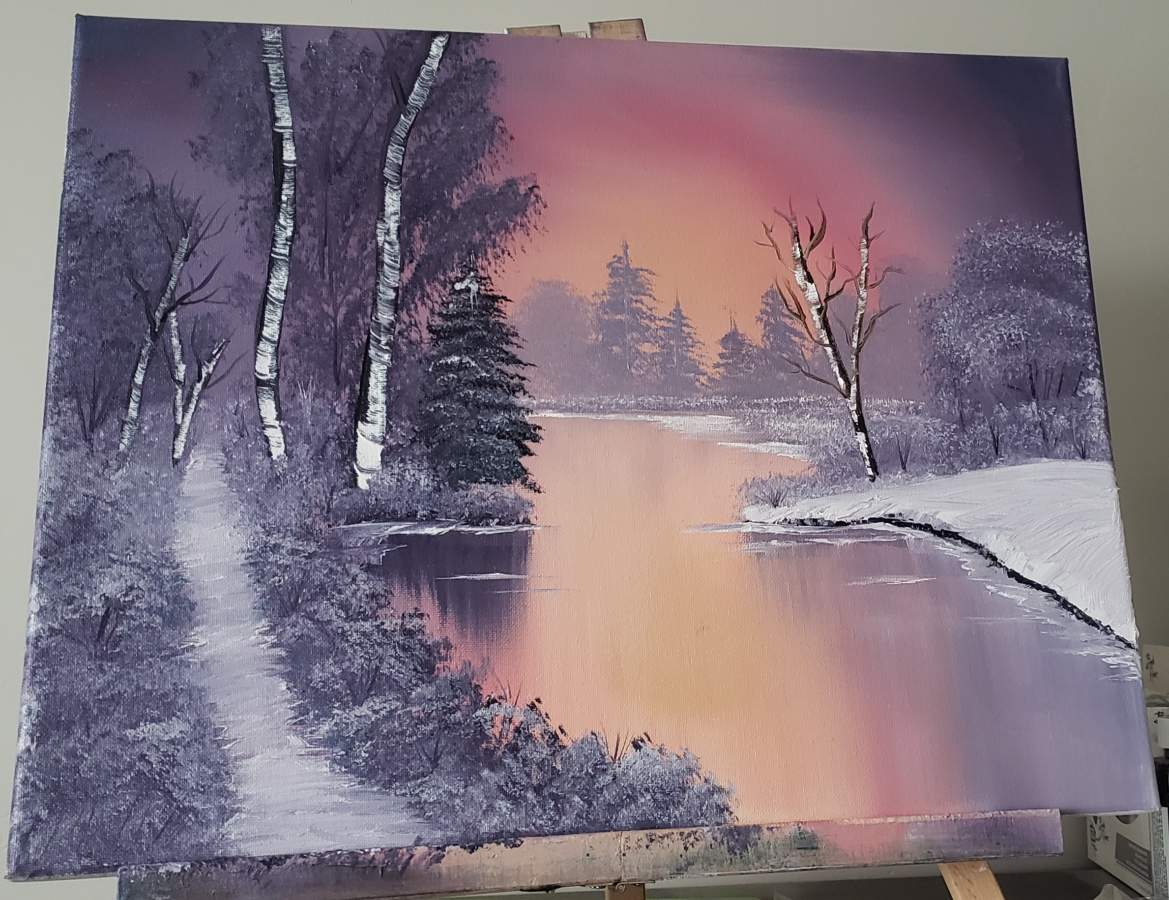 Lovely colors! Nice work to create distance through use of lighter values for distant trees!