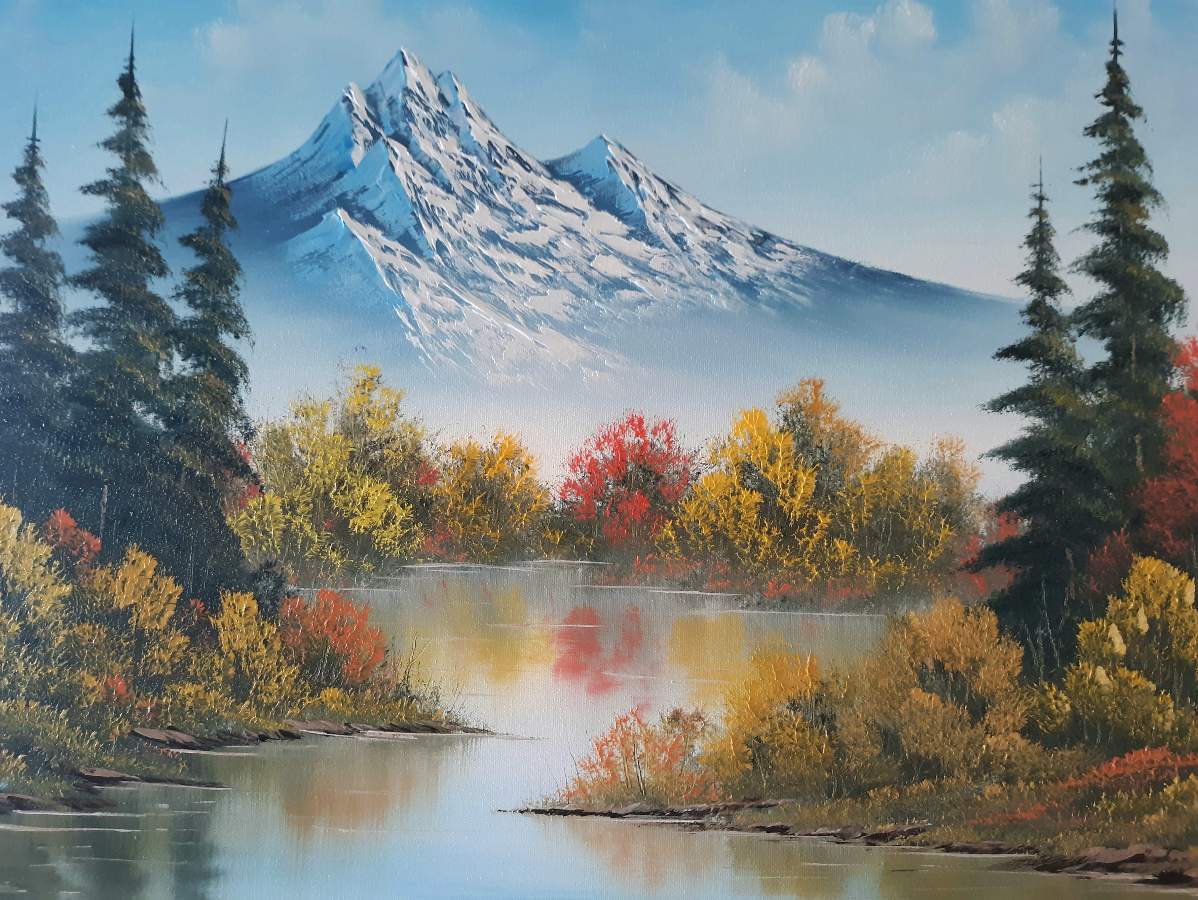 This painting is great. I went to your TIB profile page expecting to see a 'Bob Ross Certified Instructor' tag there. To me, this is that good. I especially like the shrubs and bushes. You did well in gaining some separation from one bush to another as well as subtle changes in color, so they don't look like one big blob of foliage (like mine usually do). Oops. Did I say that out loud?