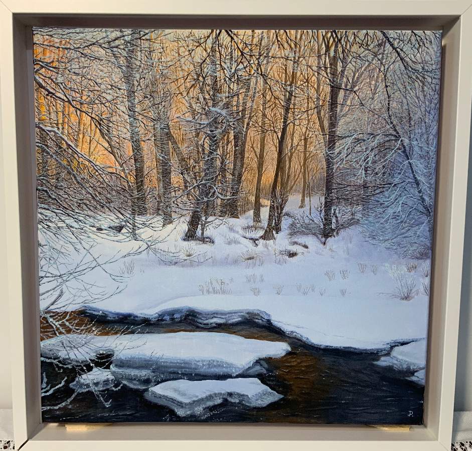 ‘Winter’s Light’ is the MJSTv tutorial just completed on a 18x18” (45x45cm) canvas in oil. I chose the larger size and a 360gsm canvas to better capture the detail in the Reference Photo. I was lucky in that I had a 50x50cm frame handy to put hold this painting for the photo op. Other than some quick views, I didn’t follow Michael’s videos, but did my own thing in the planning and completion of this painting. My wife and I are very happy with the outcome. It could well be entered into a couple of local Art Shows later in the year. Enjoy. Cheers