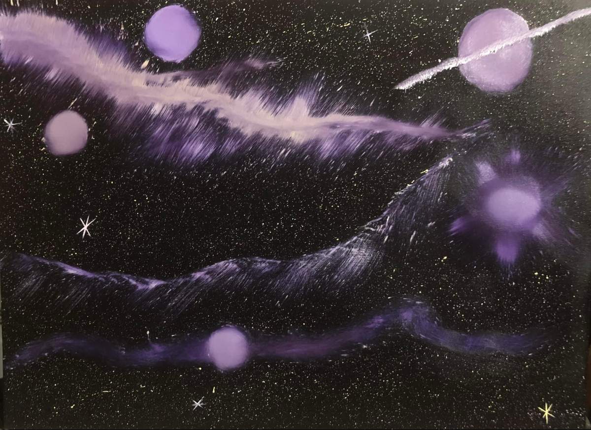 Usually, I paint landscapes, but something inspired me to paint a space-scape. This is my first “abstract” painting and I have to say that I love it!