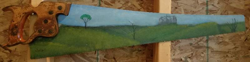 Noticed a silo surrounded by nothing wanted to capture vastness of the horizon so chose to make this on a sawblade, retrospectively I should have made the silo smaller. I think that would have done better maybe, but still wanted it recognizable. P13 (1st original)