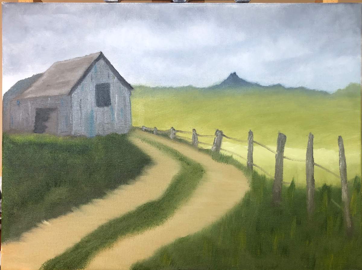 Great job on the perspective: fence, barn, road! Wonderful sense of depth with moving far away to bluish gray color! Sky is very nice and live!