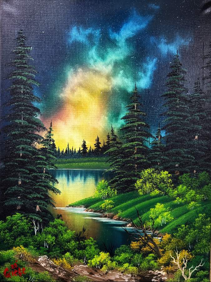 Stunningly beautiful. This compo has everything I enjoy about this wet on wet process, a great sky, reflective water, tall dark lush trees and a detailed well defined foreground. Nic turns out some fabulous paintings and you nailed it.👍