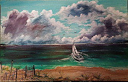 Facing The Storm on 24x36 canvas in acrylics.He is a brave lil guy on his sailer..He faces the tempest with no second thoughts or fear.The perilous trek amidst the storm only intensifies the excitement ..Cheers,P
