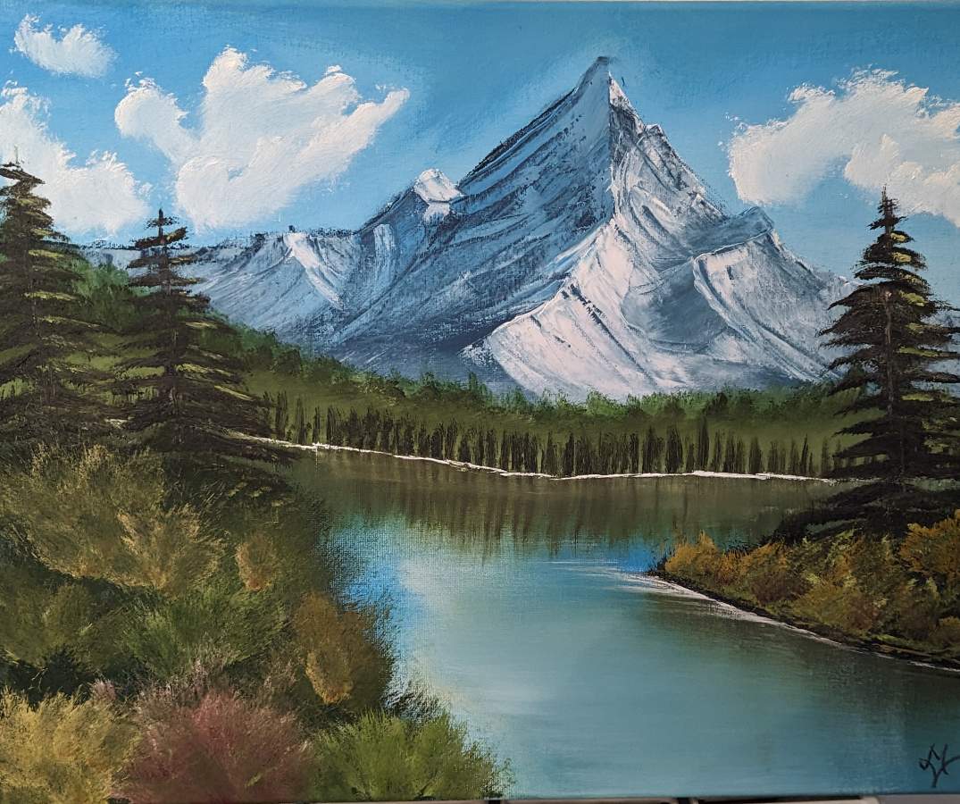 Nice mountain, too. It shows good depth with lots of variation in the slopes. Best wishes and just keep painting. No fear.