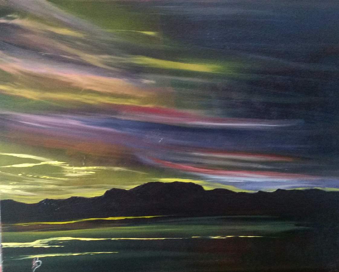 Tried something different with this one. Used black canvas and painter tape to get the horizon/hills or mountain line. It was was a challenge to tear the tape lengthwise and get it straight/parallel.