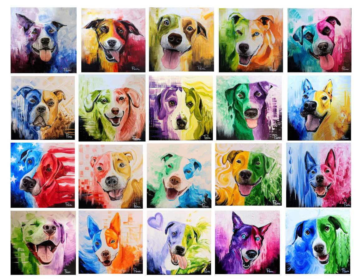 About a month ago, I was inspired to create a new group of paintings I called my "adoptables"; paintings of dogs available for adoption at a local animal shelter (Profits all donated to the shelter πΆ), combining realism with color and abstraction. I was not even close to being prepared for the overwhelming response by customers to these new style pet portraits. I received almost 20 custom orders in this new style from my first show - AND people were buying the "adoptables" like hot cakes.