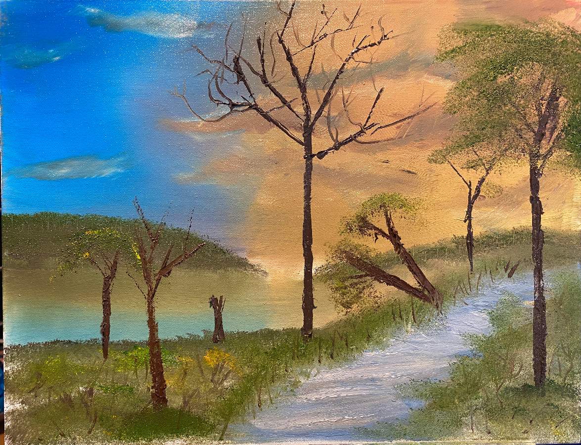 I was camping in Kansas and came across this path by the lake that just seemed too pretty to be real. The sky really was split in color like that!