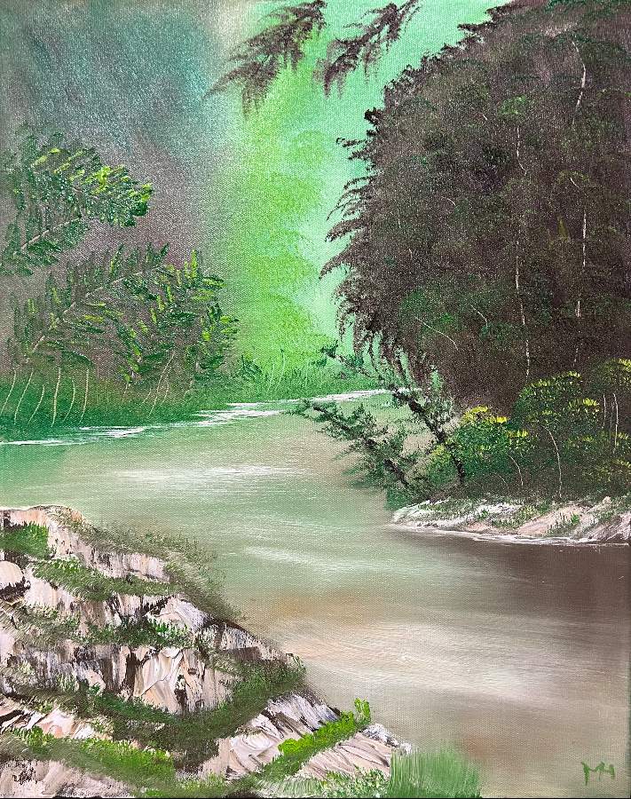 Inspired from the painting I shared yesterday, I’ve determined this painting takes place somewhere in the foothills of that one. It is loosely inspired from a Buck Paulson tutorial.
