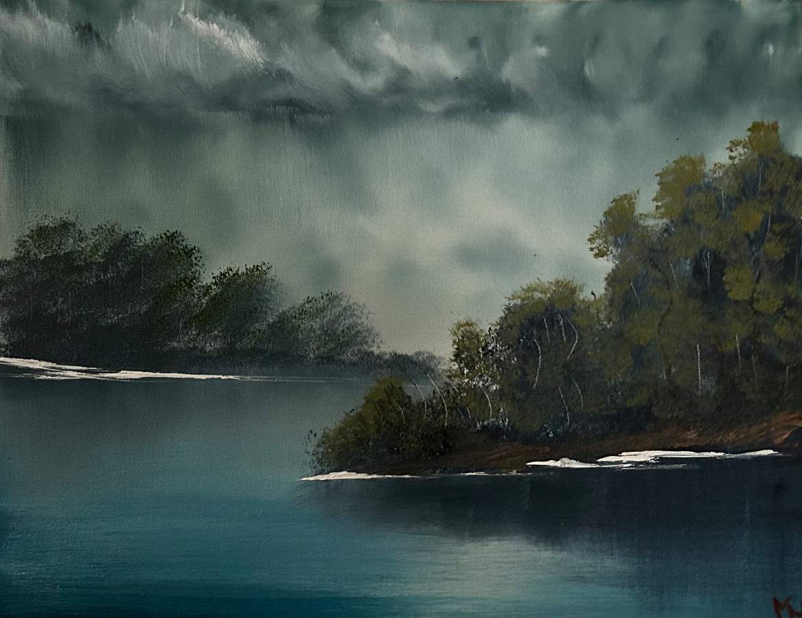 A stormy scene from a local park. Did a demo of this painting at a farmers market.