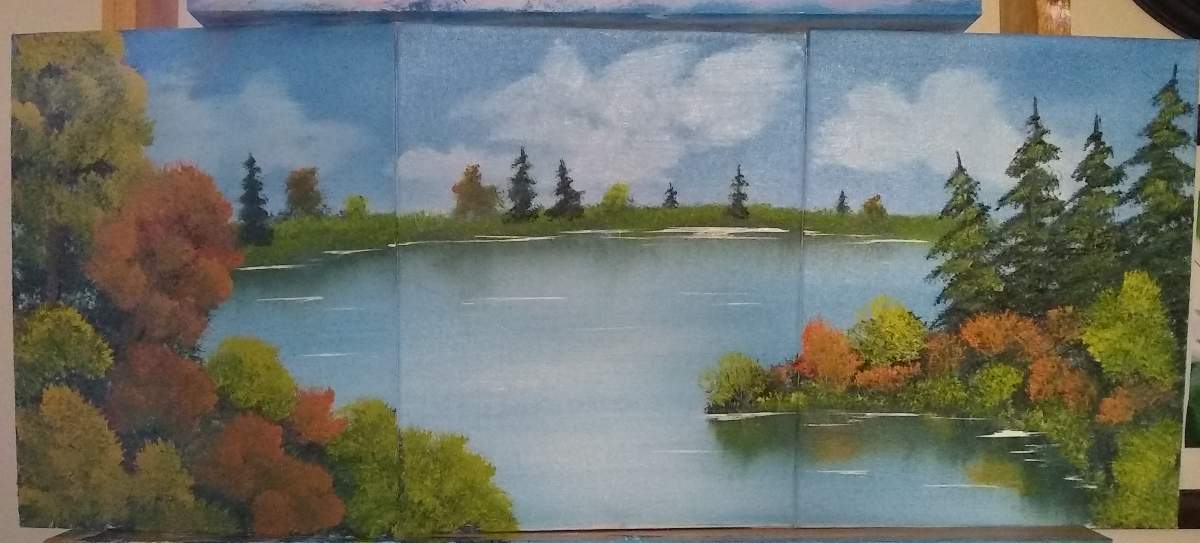 You did beautiful painting! Trees on the left look plush. Water is very nicely done too!