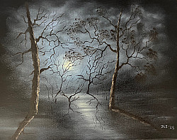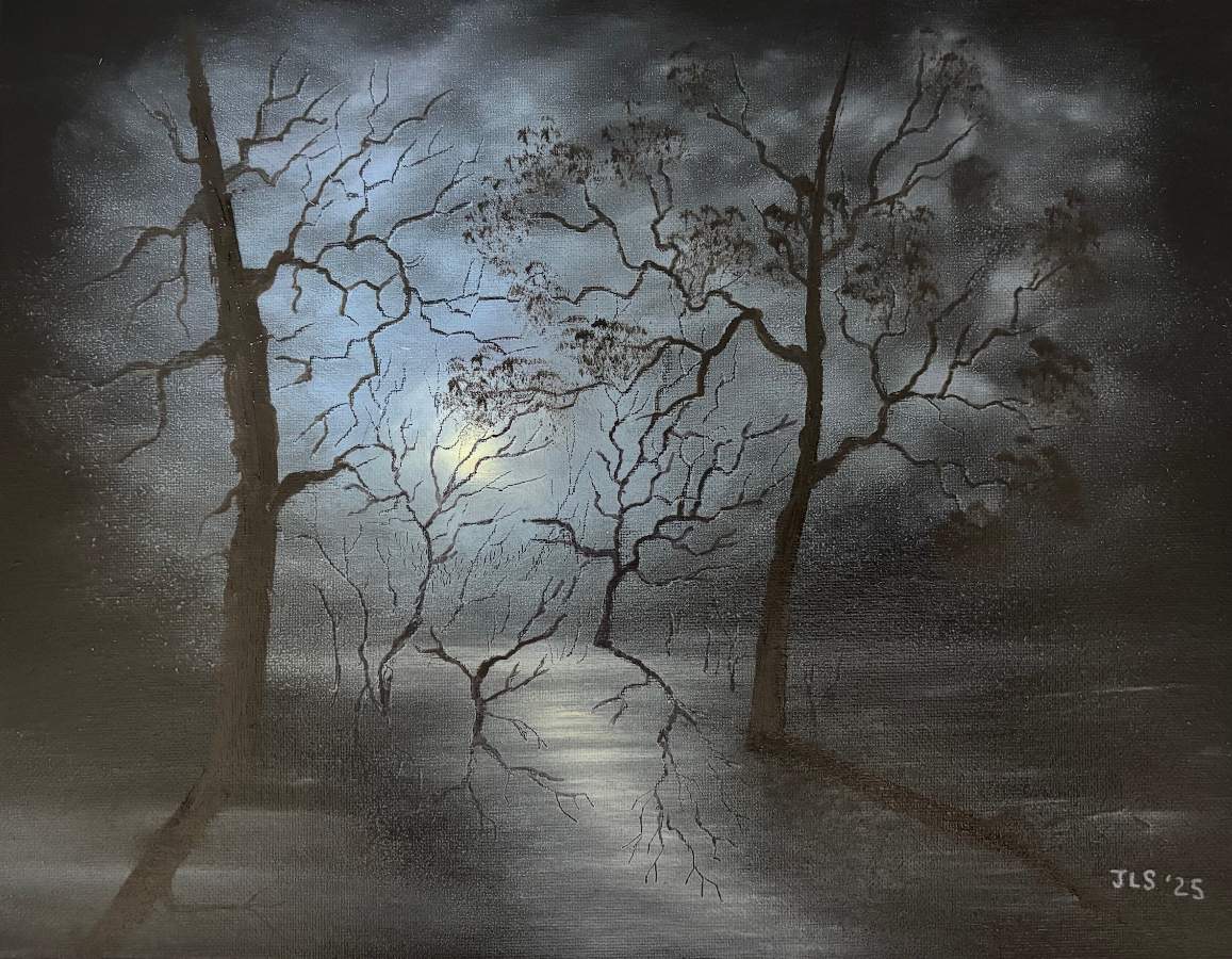 11" x 14" oil on canvas. Black canvas/liquid clear to start. Used the approach of Bill Alexander in his wonderful composition. Fun and helpful for adding other ideas to the "toolbox."