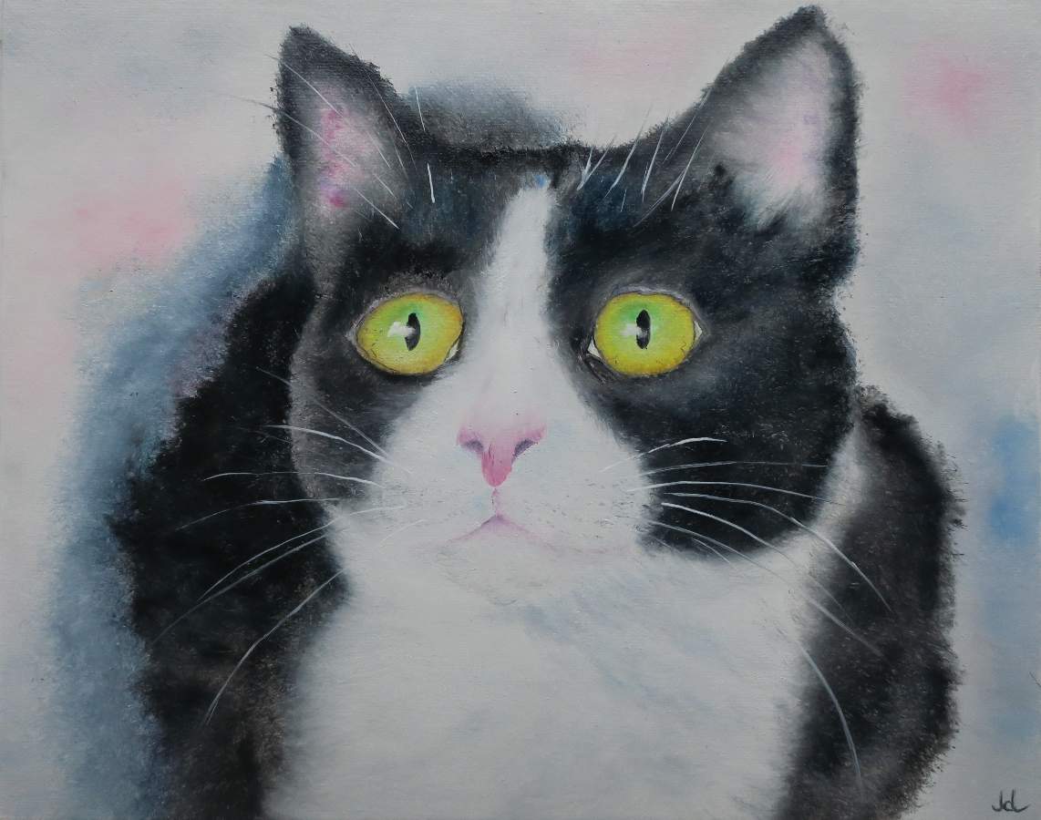 Aw this is so sweet. Beautiful eyes and pouty chops. I envy all who can paint animals, love it.