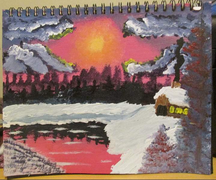 Another Golden Glow type painting on the acrylic notebook. I like this one better. I think the sky is too busy and the land could be better.