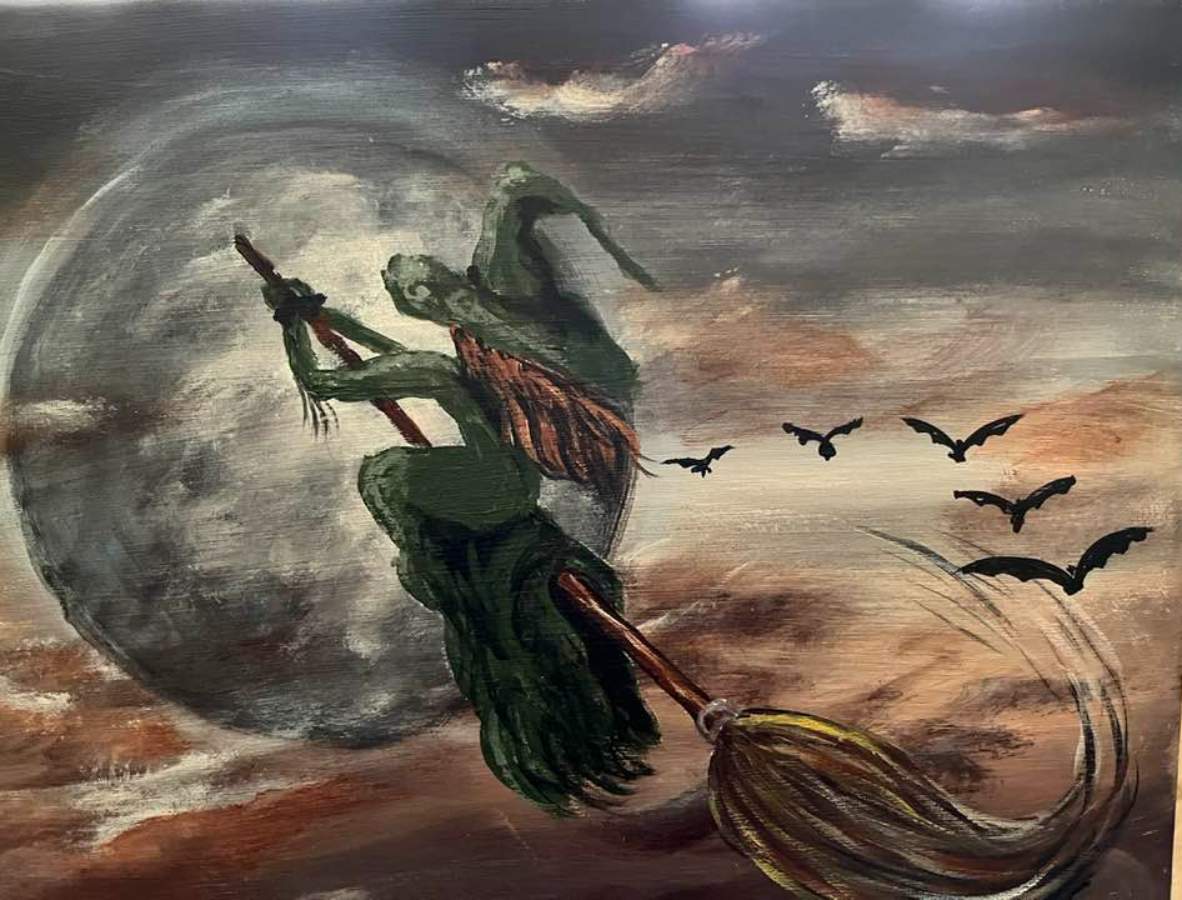 It looks like there is face on the moon. Nice creepy witch and creepy moon rendezvous!